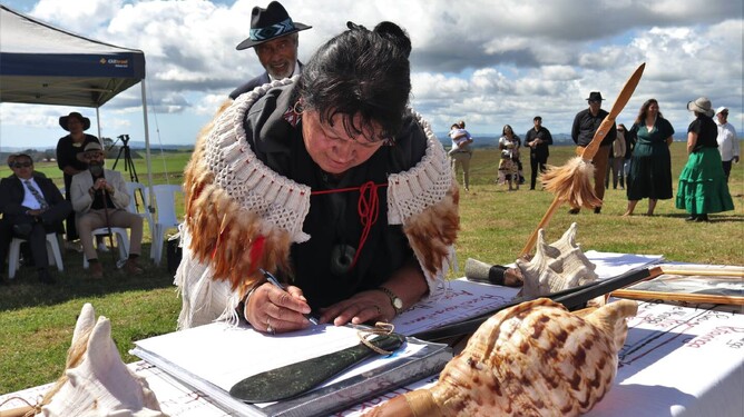 Members of Te Whiu, a central Bay of Islands hapū with close links to Hokianga, signed the lease on-site with Government representatives on Saturday.