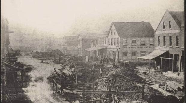 It’s called Waihorotiu Stream, and is one of the many streams around Auckland that have been covered in. It runs from a marsh now called Aotea Square out to the Waitematā Harbour.