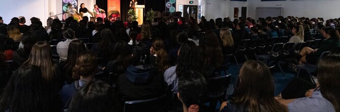 Moana Maniapoto speaks to students